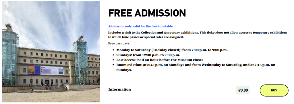 それでは、ソフィア王妃芸術センターの公式サイトから無料チケットを予約する方法を、ステップごとにご紹介します。