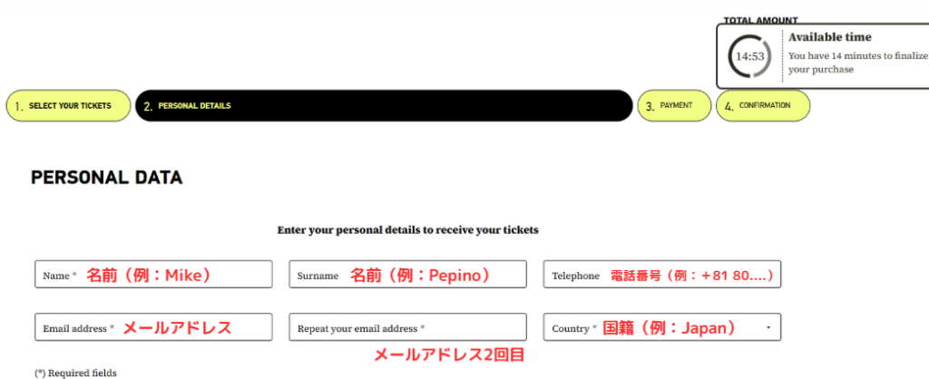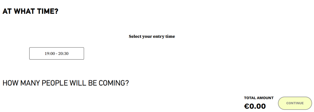 STEP③:時間帯と人数を入力して「CONTINUE(進む)」をクリック